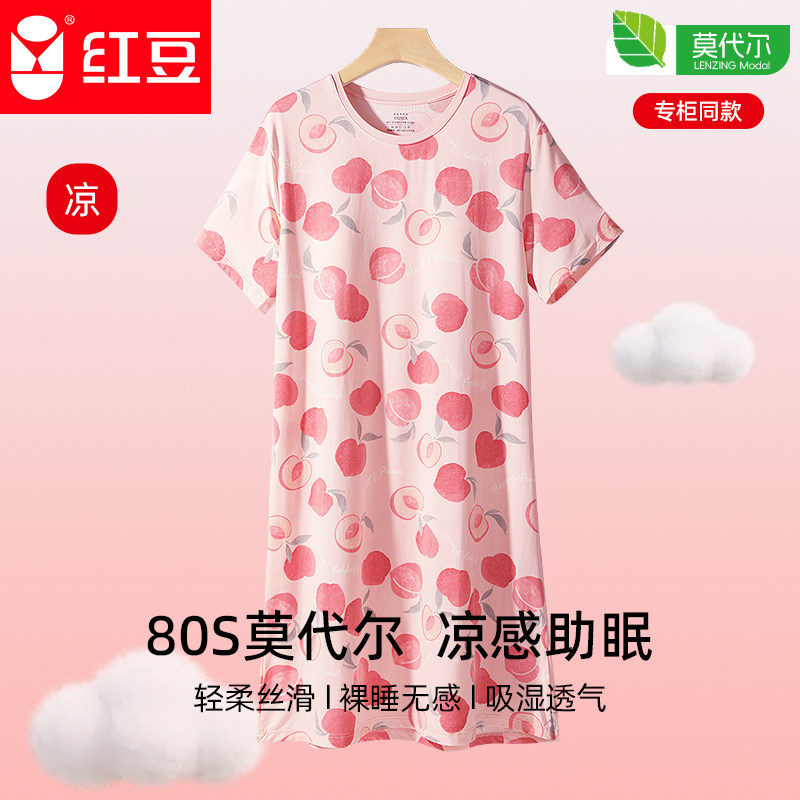 ⭕红豆莫代尔印花圆领套头睡裙