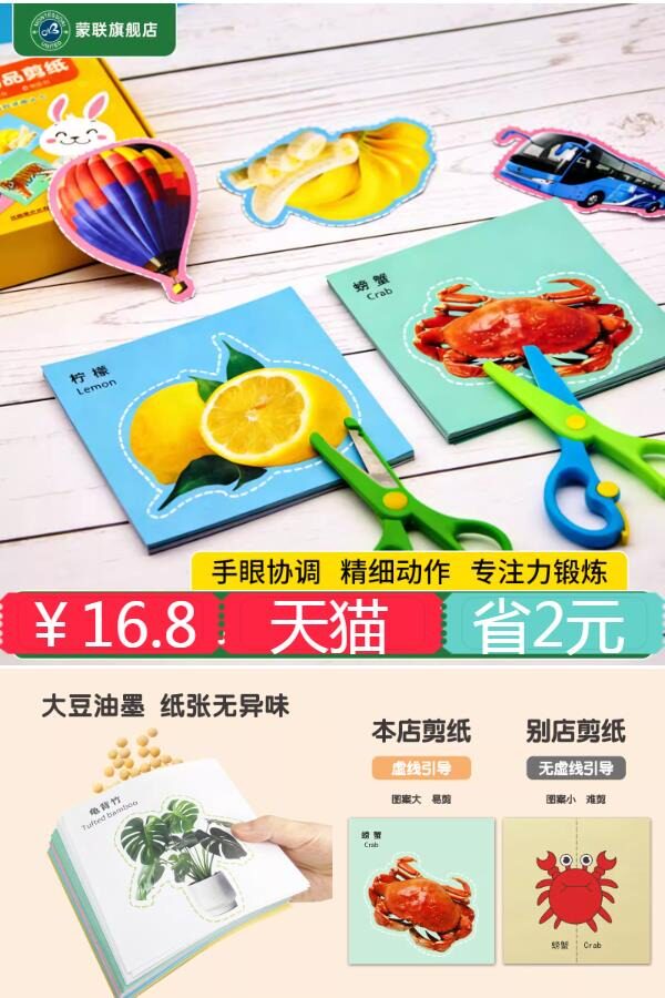 【首单+淘金币更优惠】盒装120页剪纸图案+2把安全剪刀,大豆油墨,纸张无异味,价格美丽,宝妈们速度囤起来吧~