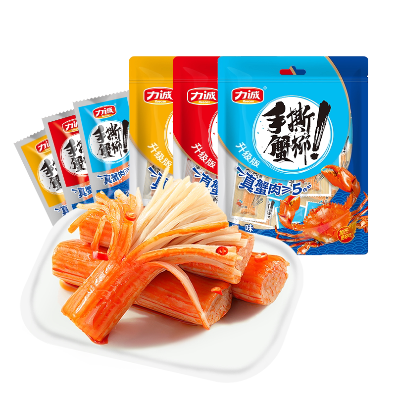 推荐:力诚手撕蟹柳蟹肉棒500g即食解馋休闲小吃零食海味火锅料蟹味食品