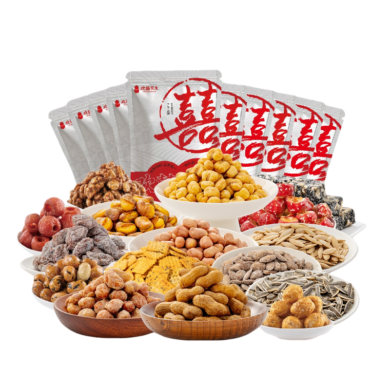 推荐:【49.9元任选6件】欢囍花生瓜子果脯任意组合零食
