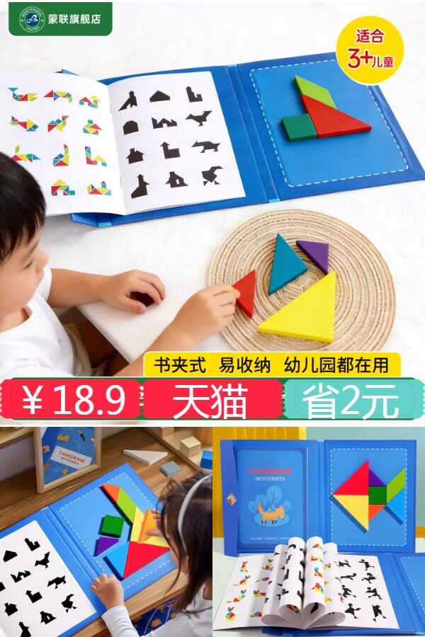 【首单+淘金币,到手更优惠】蒙氏教具儿童七巧板磁吸拼图玩具,磁力益智玩具,价格美丽,宝妈们速度囤起来吧