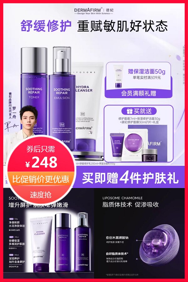 【买就送修护面霜7ml+保湿修护洁面30g+德妃修护面膜30ml/1片+礼盒】德妃紫苏舒缓修护套装!专为敏感肌定制,洁面+水+乳+精华+面霜五步维稳,植萃精粹温和不刺激~