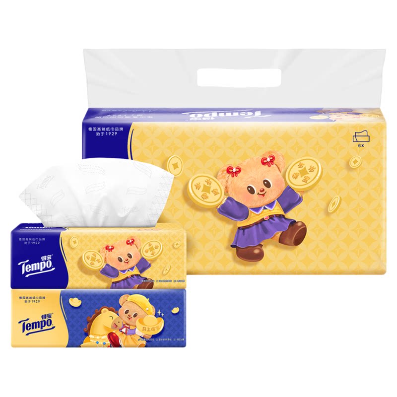 得宝新年特别款黄油小熊联名无香软抽纸4层M码80抽6包/15包/30包