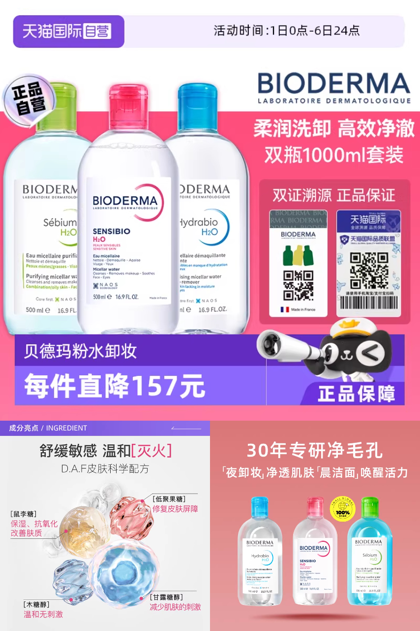 ⭕【易梦玲同款】贝德玛卸妆水500ml*2