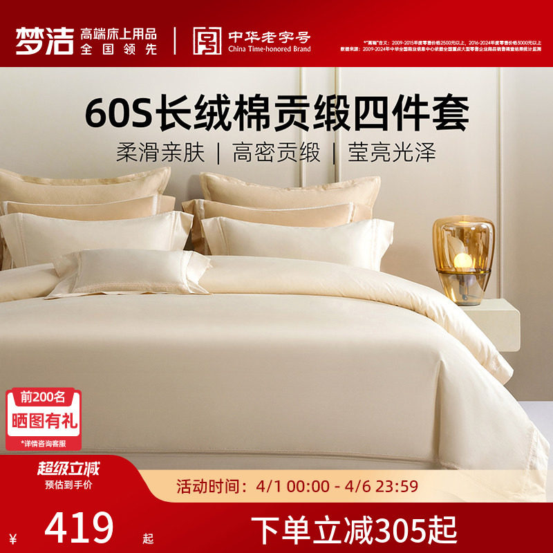⭕梦洁家纺棉绣花素色纯色四件套