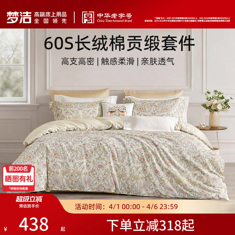 ⭕梦洁60支长绒棉三件四件套纯棉