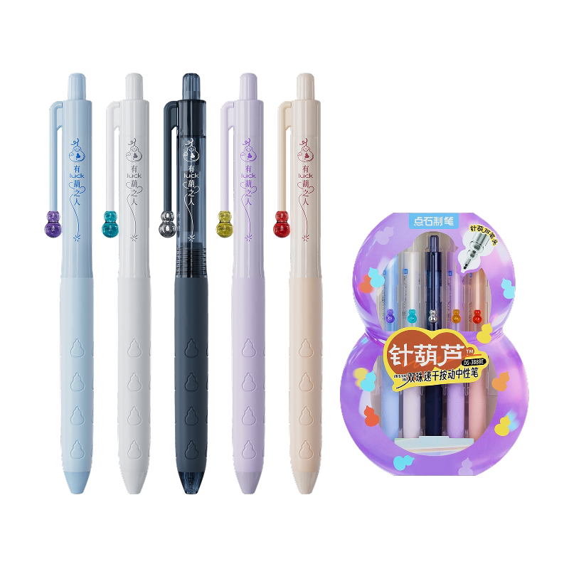 推荐:【新品】点石葫芦笔针葫芦笔头中性笔按动圆珠笔双珠顺滑速干学生用考试刷题书写初中生专用笔高颜值黑笔0888