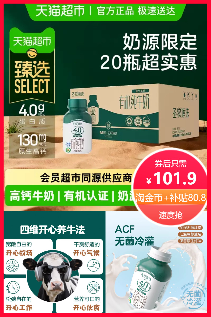 推荐:淘金币入口80.8!圣牧纯净牛奶*20瓶
