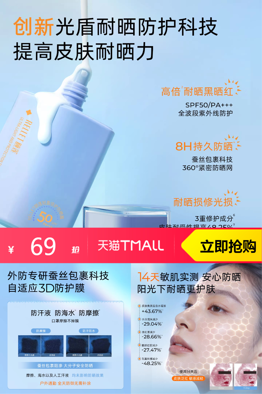 【下拉详情页淘金i抵扣10元,到手69元,折合35元/个】颐莲轻盈倍护防晒霜50g*2,高倍耐晒黑晒红,SPF5O/PA+++全波段紫外线防护。