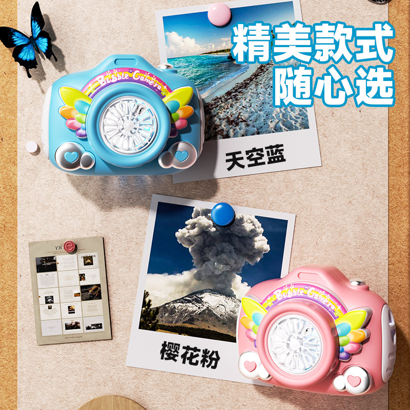 谁能拒绝一台会吐泡泡的相机呀📸✨,粉蓝配色把春天都装在手里~一键开启漫天泡泡雨,灯光blingbling闪,,遛娃/约会/野餐都超有氛围感, 是小朋友的快乐魔法,也是大朋友的解压神器~