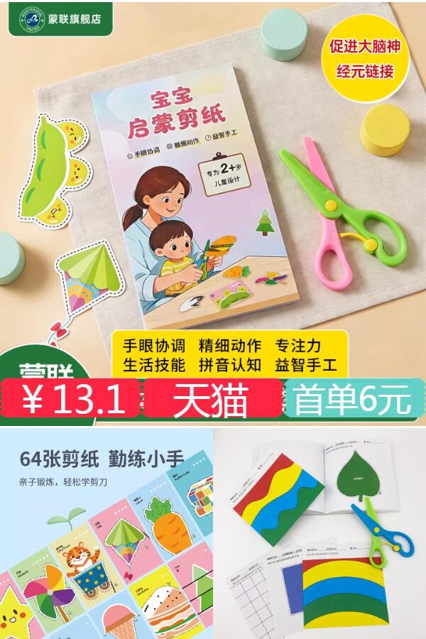 【首单6元+店铺优惠3元+官方立减1.8+淘金币,到手低至约5元】蒙氏早教儿童剪纸+儿童剪刀,价格美丽,现在不买,涨价被宰~
