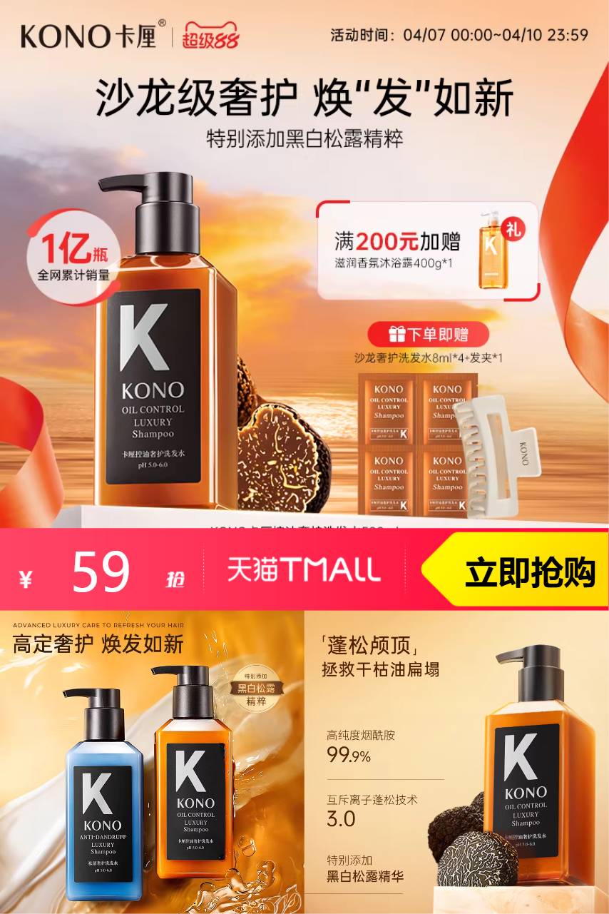 KONO(美妆) KONO卡厘奢护黑白松露控油蓬松洗发水 75元减16 商品纠错