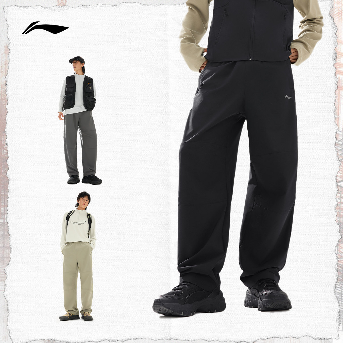 ⭕李宁C位裤丨新款春夏男款直筒黑色运动长裤