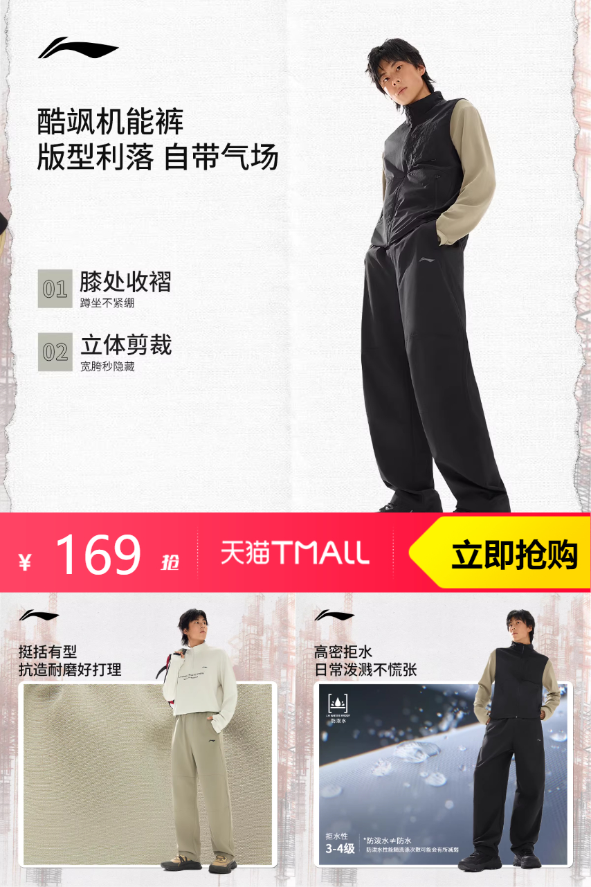 【叠加淘金币5.79元,凑200-25消费券到手142元左右】李宁C位裤丨新款春夏男款直筒黑色运动长裤,挺括有型,抗造耐磨好打理。