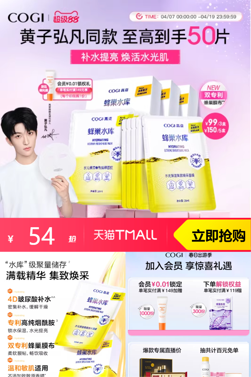 推荐:高姿蜂巢水光保湿焕采面膜20片