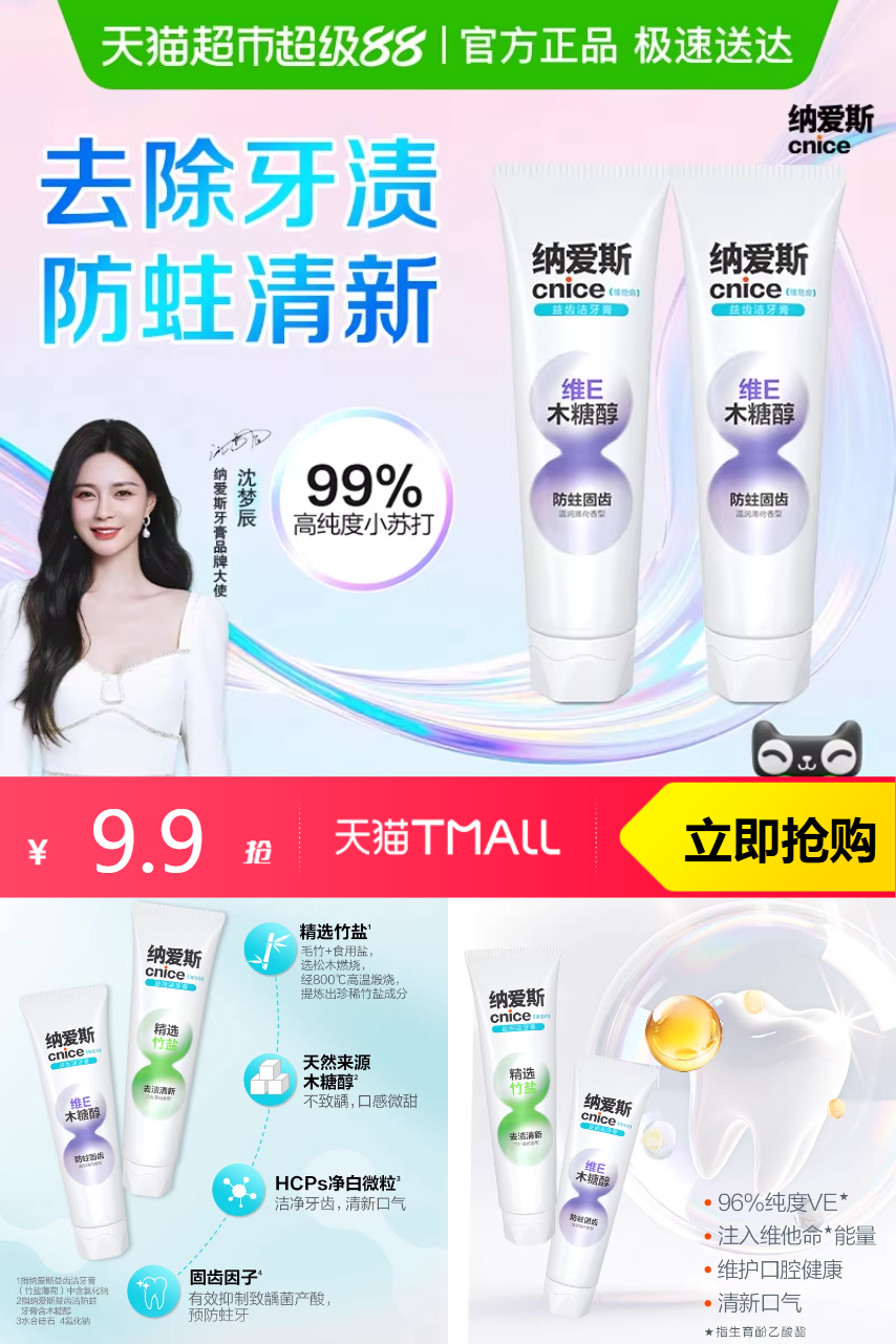 【新人福袋2元,淘金币抵扣1.39元,淘礼金0.69元,88vip减0.5元,到手 5.32元两支,一支2.16元。】氟化物层层修护牙釉质,筑牢牙齿防线,清新口气还亮白!