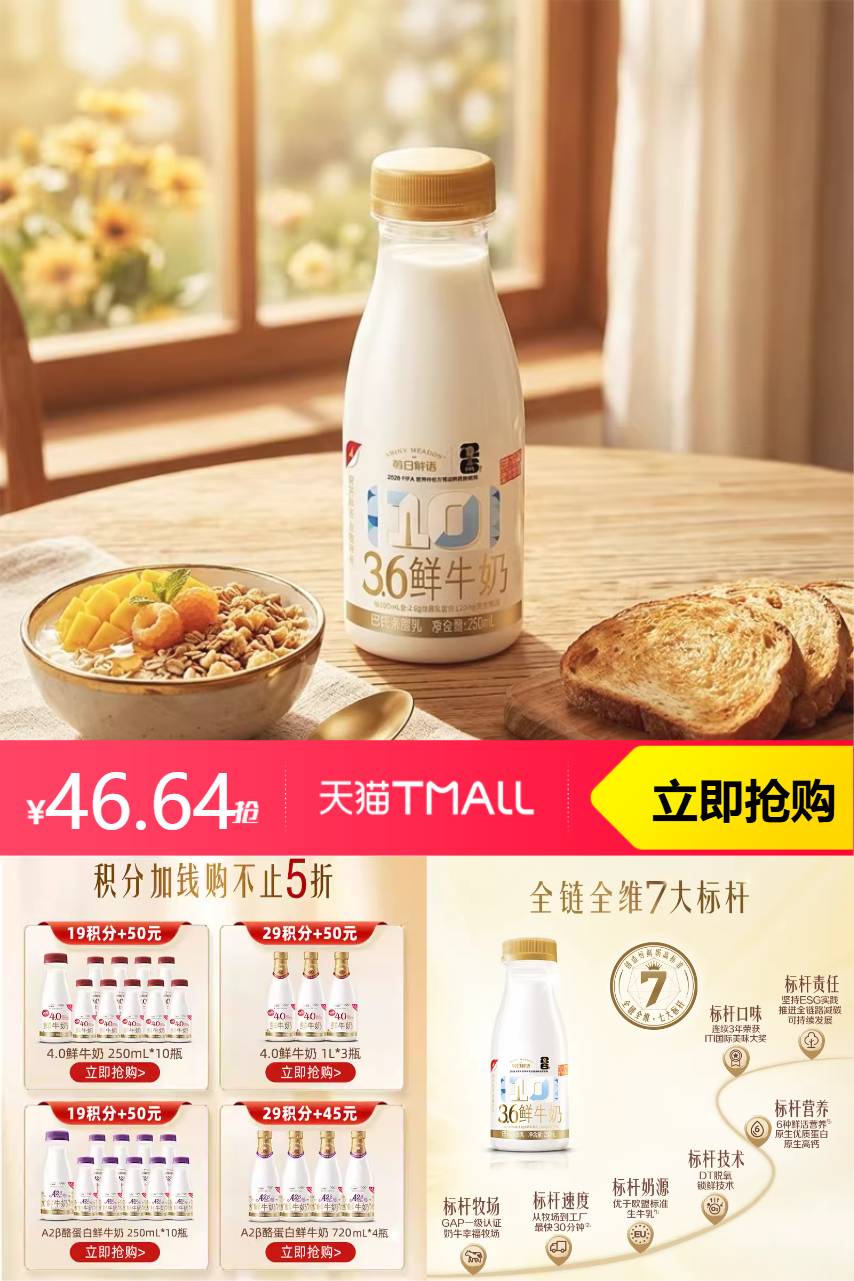 【进秒杀频道秒杀后到46.64,叠88到44.31,凑200-25消费券后到38.96】肖战推荐!每日鲜语高钙有机鲜奶250ml*11瓶,秒杀到手仅39.69元!新鲜营养足,有机品质保障,活动价叠加更划算,限时秒杀,手慢无!