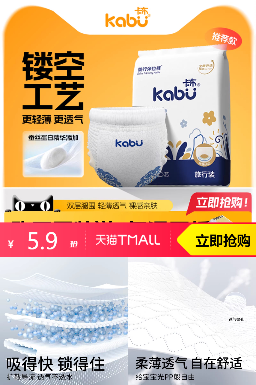【淘金币0.52元,到手价5.38元】触感丝滑蚕丝蛋白浸润细旦纤维,松软亲肤滋润护肤,穿着裸感布满腰臀腿的空气通道,双效吸收宝宝的连环尿也能妥妥接住!
