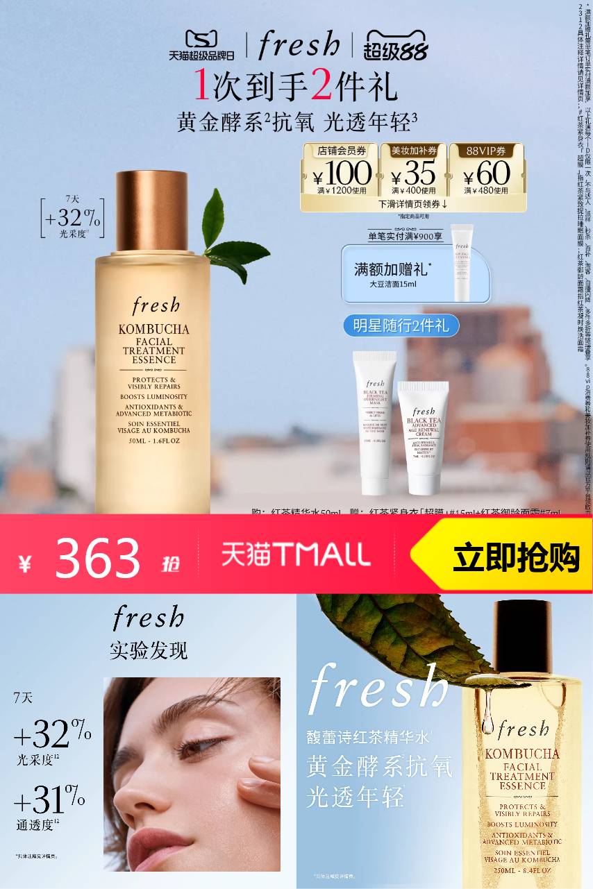 馥蕾诗 Fresh馥蕾诗红茶酵母酵萃精华50ml 400元减37 商品纠错