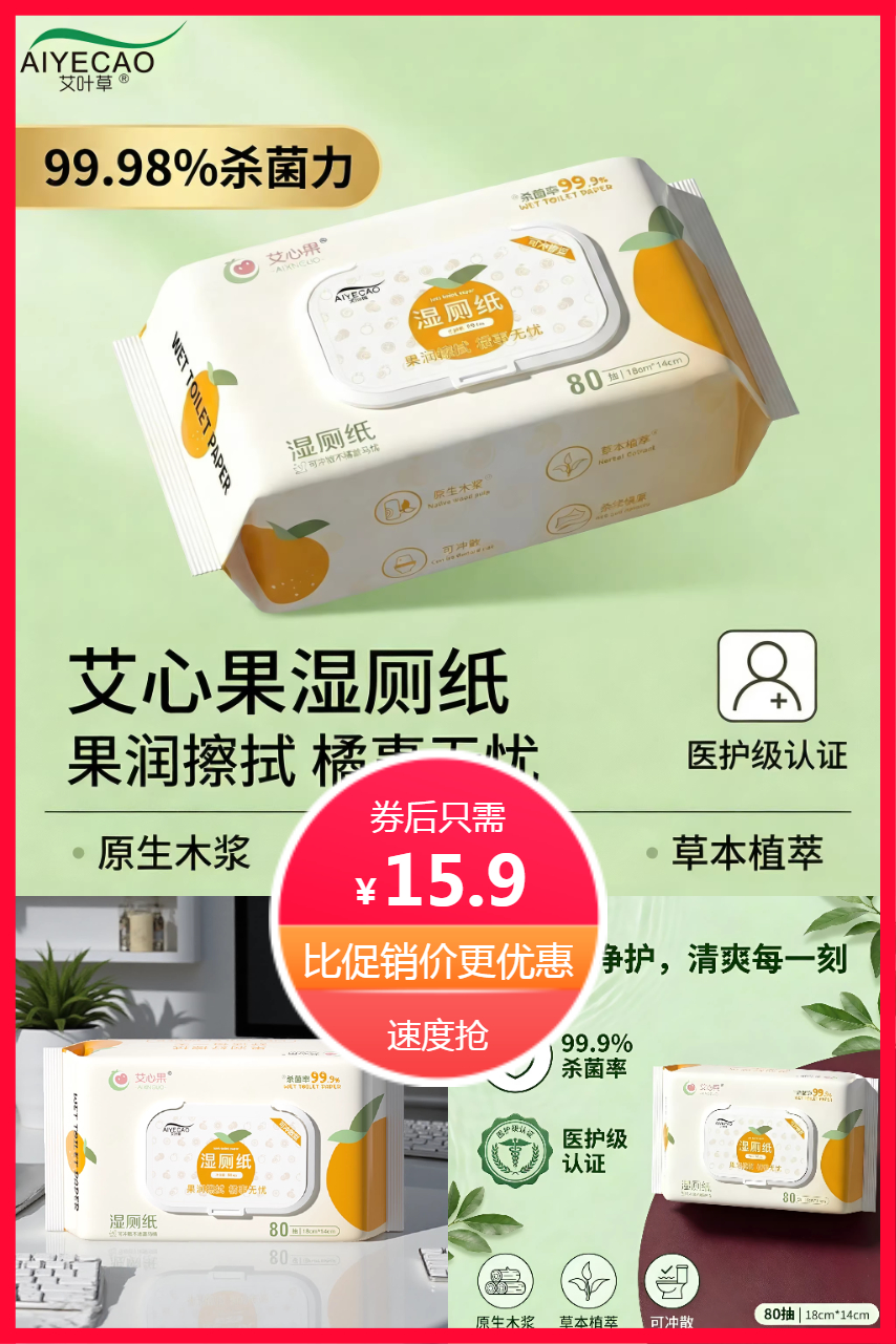 ⭕艾叶草湿厕纸杀菌湿厕纸3包240抽