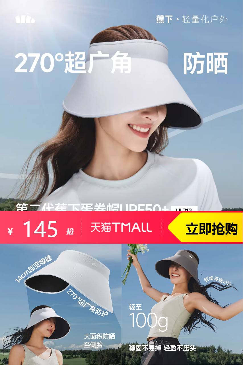 蕉下防晒帽灯罩帽女无痕一体UL712 219元减74 商品纠错