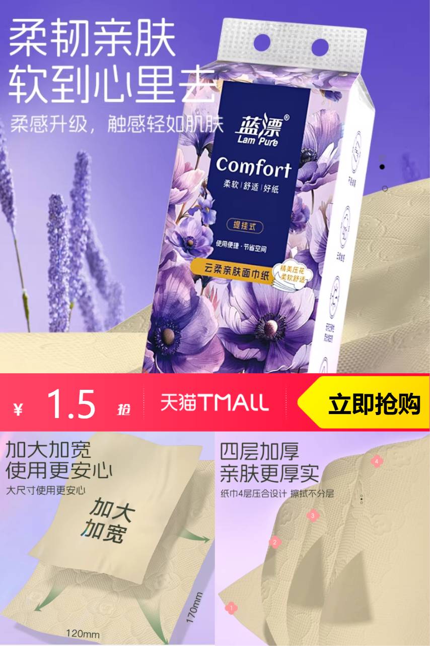 ⭕蓝漂悬挂式抽纸4层200抽