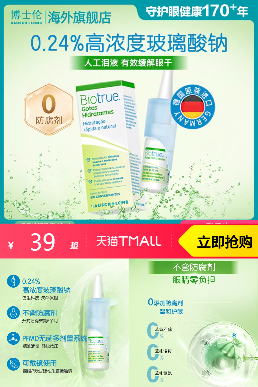 【1、叠加金币 抵扣10.98 2、首单礼金4块 到手 24 3、效期10月到期】博乐纯润滑液,高浓度玻璃酸钠,仿生泪液缓解干眼症状~