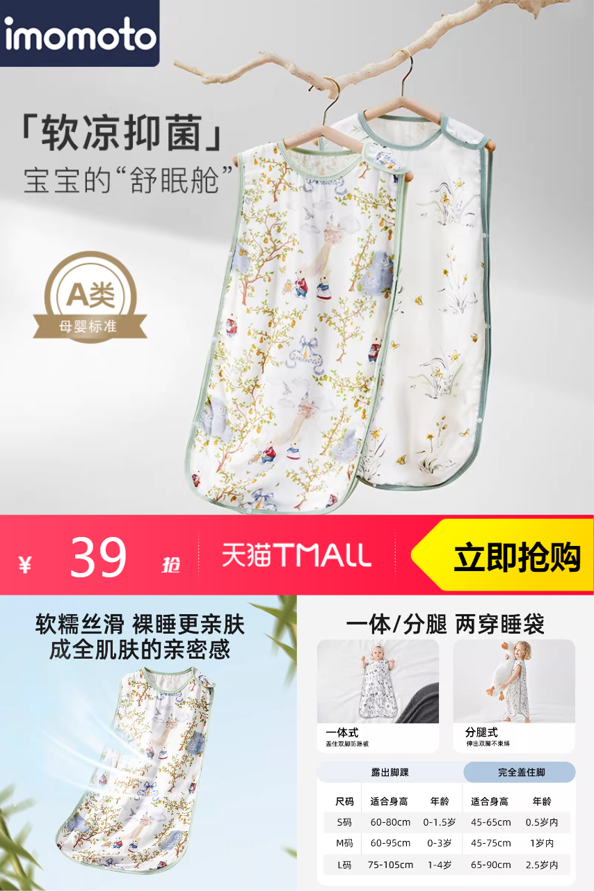 【原价119,领券减80,淘金币抵扣3,到手仅需36】宝宝纱布睡袋夏季款无袖背心婴儿四季恒温,高标准守护健康睡眠。