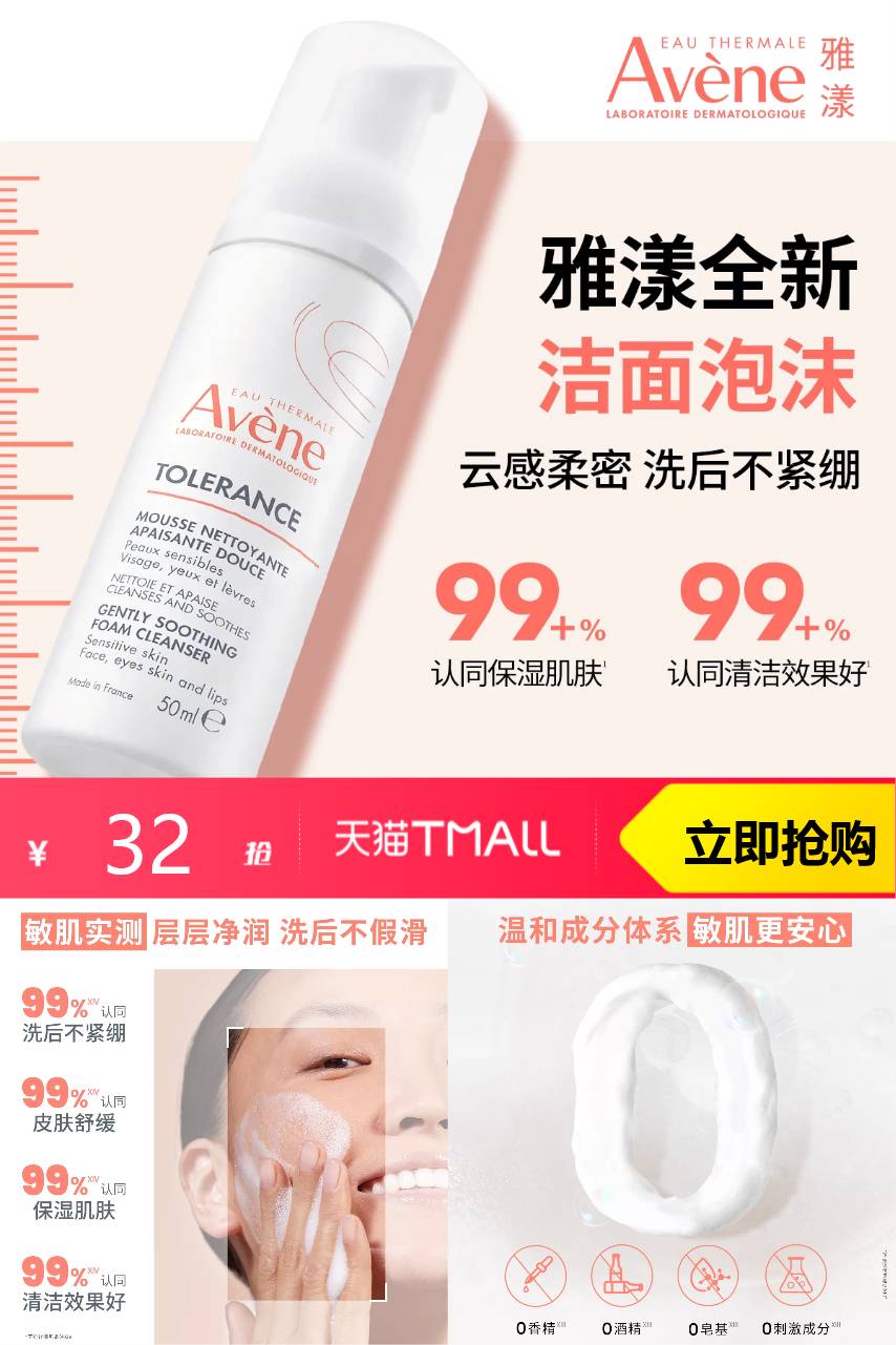 【超级立减20元,淘金币抵扣6.47元,消费券抵扣3元,到手22.53】雅漾专研舒缓洁面!温润净透云感柔密!三重表活打造高效净澈表活体系!