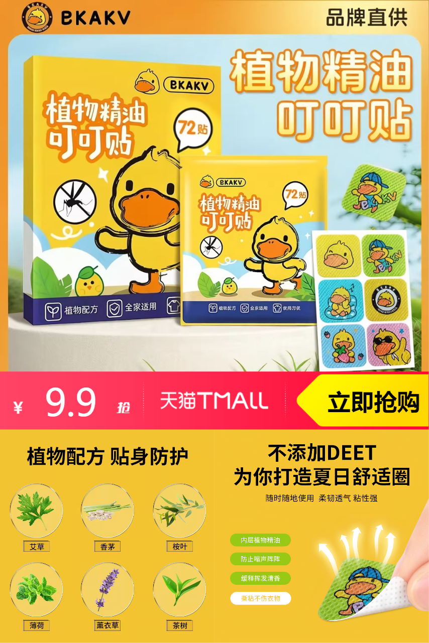 【淘金币抵2,到手7.9,144贴!】2盒植物精油驱蚊贴144贴,随时随地使用,柔韧透气粘性强。