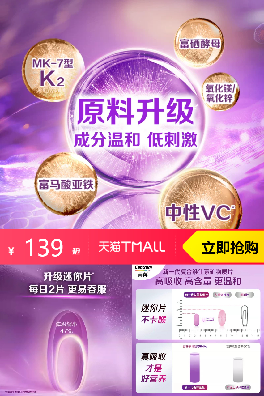 【限时补贴12-88vip优惠5.85-淘金币18=103.15,满200减去25消费券可优惠 12.95,到手价格90.2】新品善存紫瓶女士复合维生素1瓶,新一代复合维生素矿物质,高吸收高含量更温和。