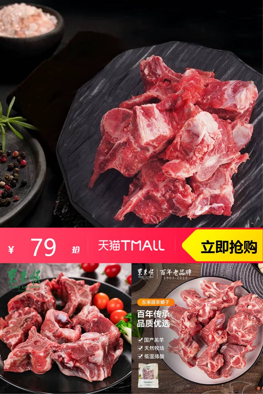 【淘金币入口减8.91,到手70.09,可再叠加满减消费券】东来顺内蒙带肉羔羊蝎子脊骨,原切新鲜,肉质鲜嫩,火锅必备,老品牌品质有保障,涮火锅更过瘾!