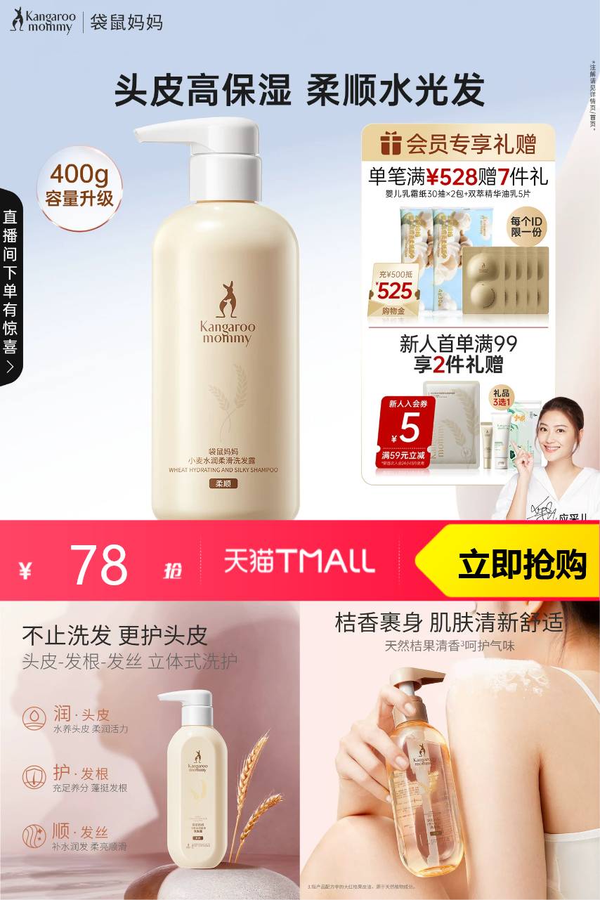袋鼠妈妈 袋鼠妈妈去屑蓬松洗发露洗发水400g*2 128元减30 商品纠错