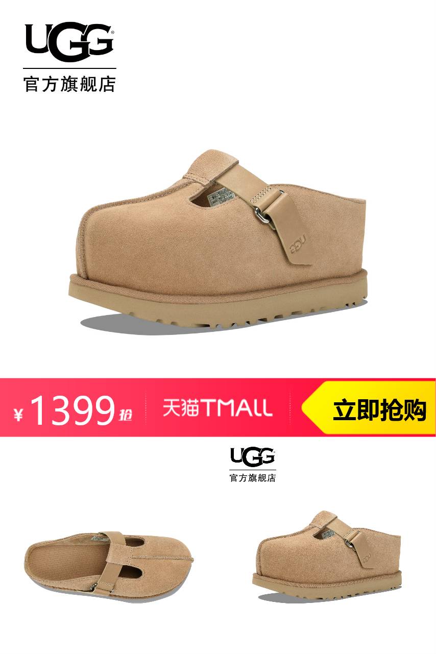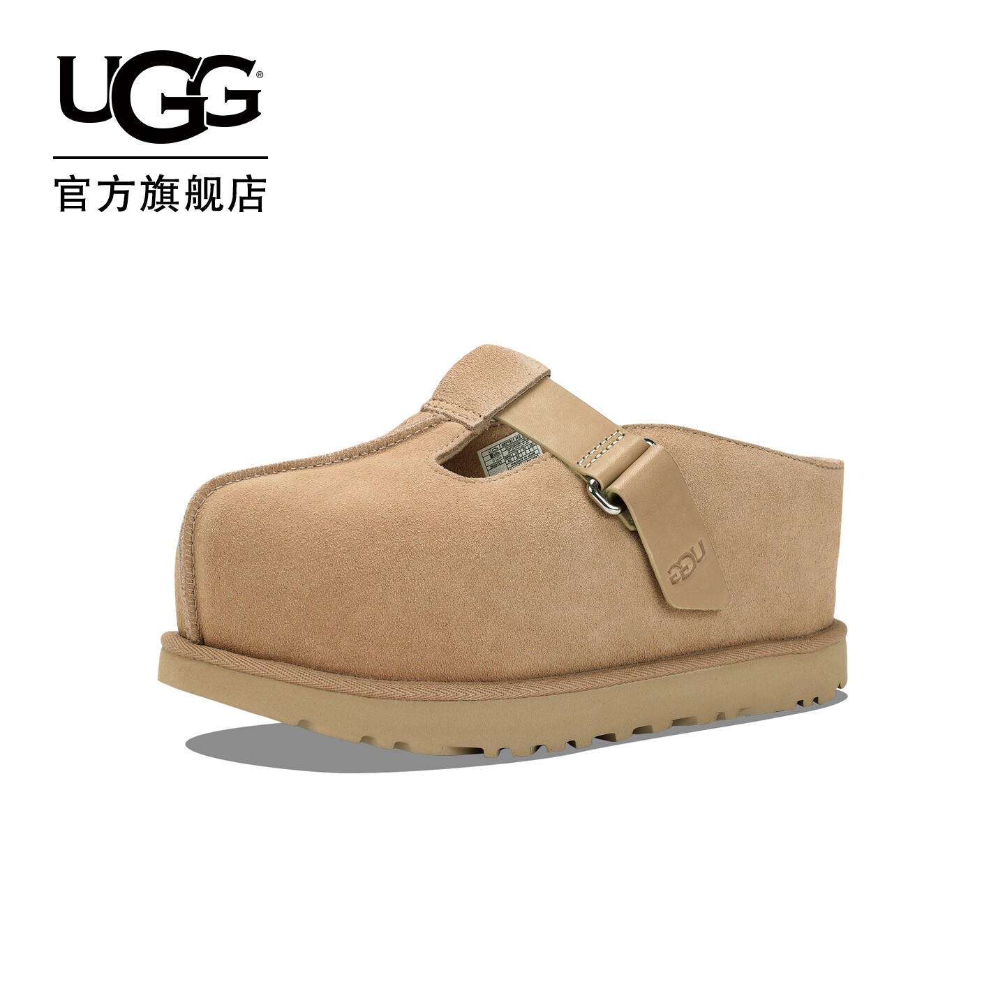【淘金币抵扣41.97,消费券1000-100,到手1257.03】UGG春季新款女士炫金半拖鞋,厚底增高设计,时尚舒适,休闲百搭。玛丽珍鞋款,显腿长更显气质