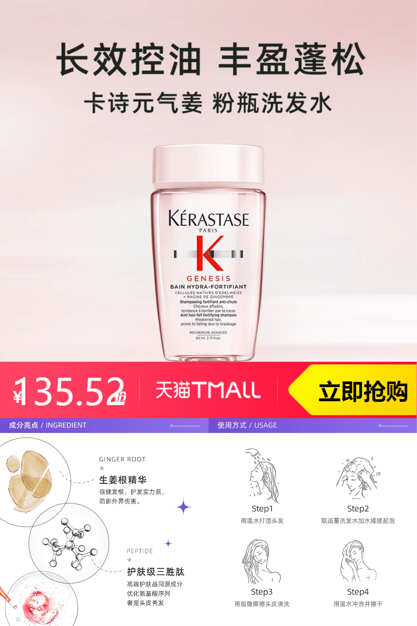 卡诗 卡诗丰元气姜沁透洗发水80ml*6 229元减93.48 商品纠错