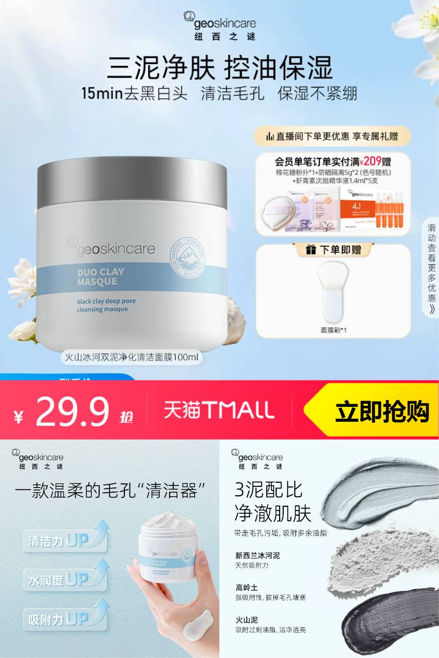 【参与消费券200-25】】纽西之谜火山冰河双泥清洁面膜,控油保湿双效合一,深层清洁毛孔,焕发肌肤清爽光泽!