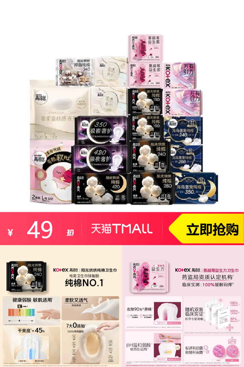 ⭕【任选6件】高洁丝海岛棉臻选纯棉卫生巾
