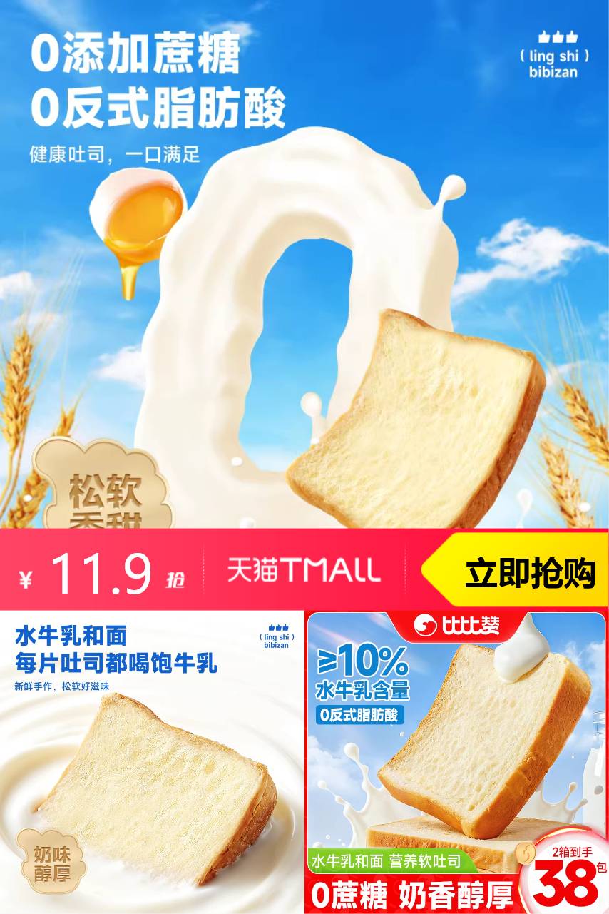 【详情页下拉跳转百补频道到手11.9元】水牛乳和面每片吐司都喝饱牛乳,新鲜手作,松软好滋味,美味食材一口下去,味觉享受,0添加蔗糖0反式脂肪酸,健康吐司,一口满足!