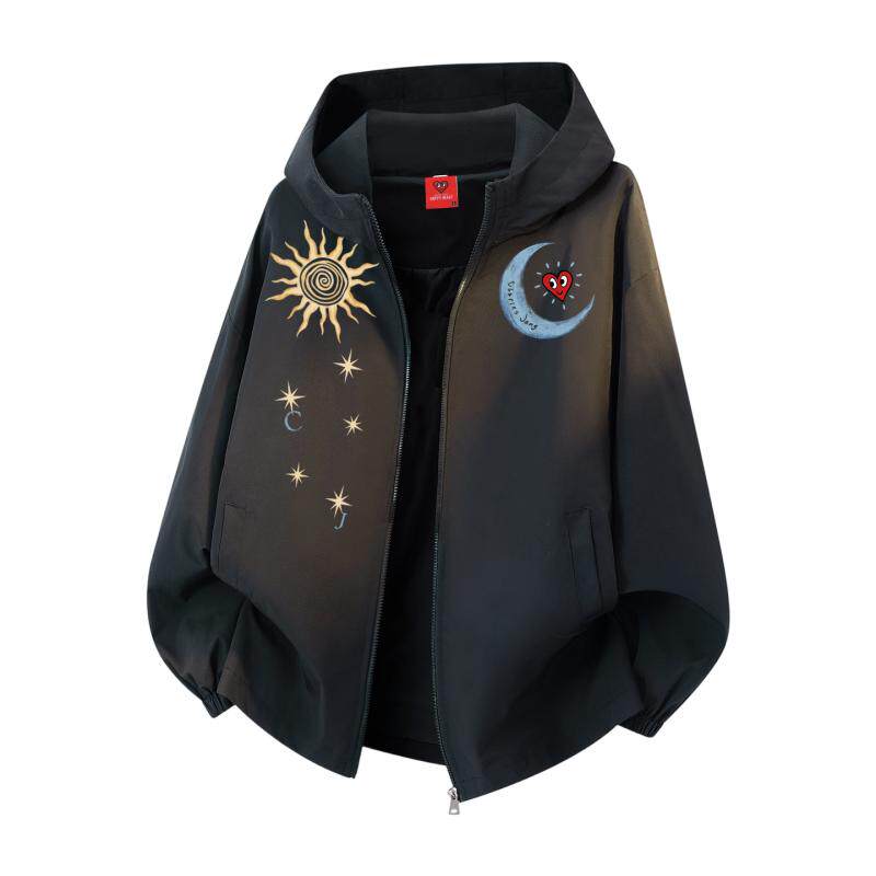 ⭕查尔斯桃心美式日月印花冲锋衣男