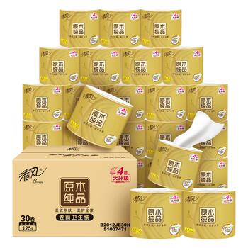 清风卷纸金装30卷卫生纸卷筒纸厕纸厕所纸巾家用整箱实惠装手纸