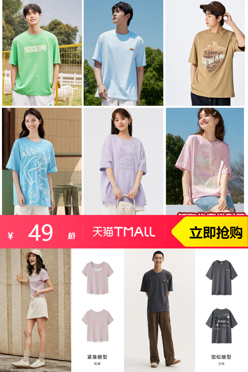 推荐:情侣上衣印花纯色短袖森马T恤