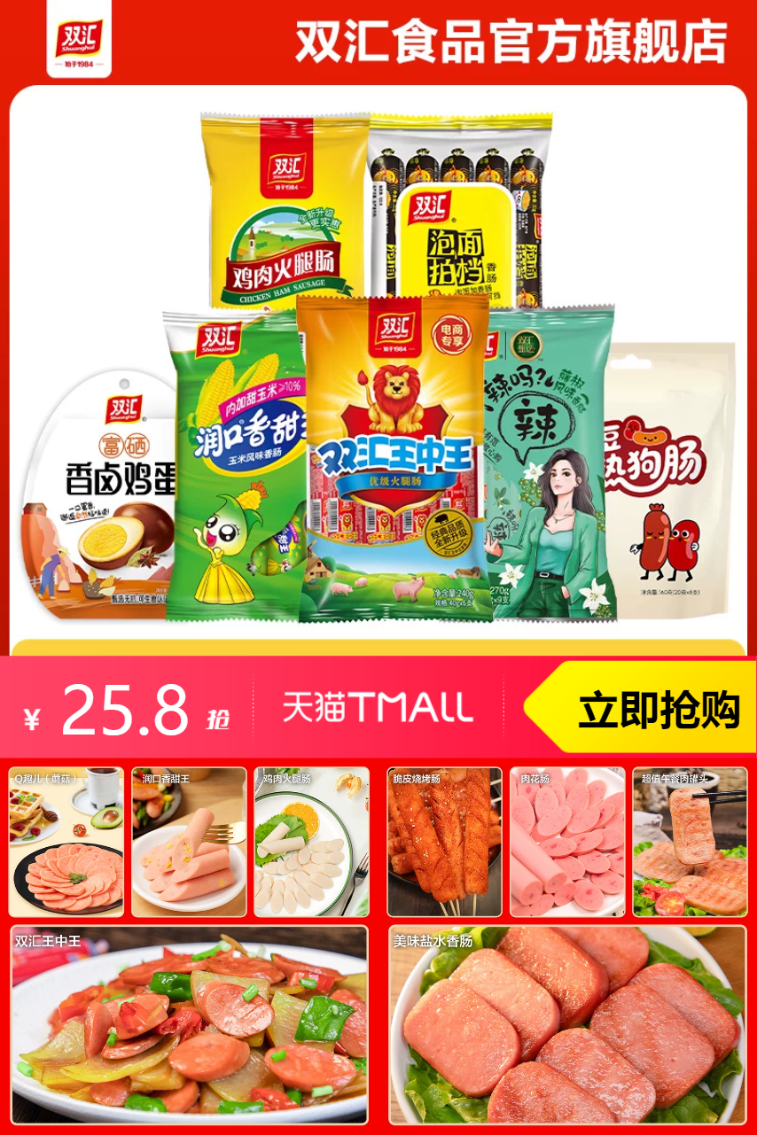 双汇火腿肠合集!错过这村没这店!克重更大!王中王火腿肠、玉米热狗肠、鸡肉肠,午餐肉肠等等,新日期!一定要多囤!这可是在最旺季的时候降价啊!仅这一波!