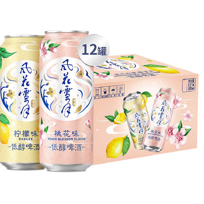 推荐:风花雪月低醇果香啤酒500ml*12罐