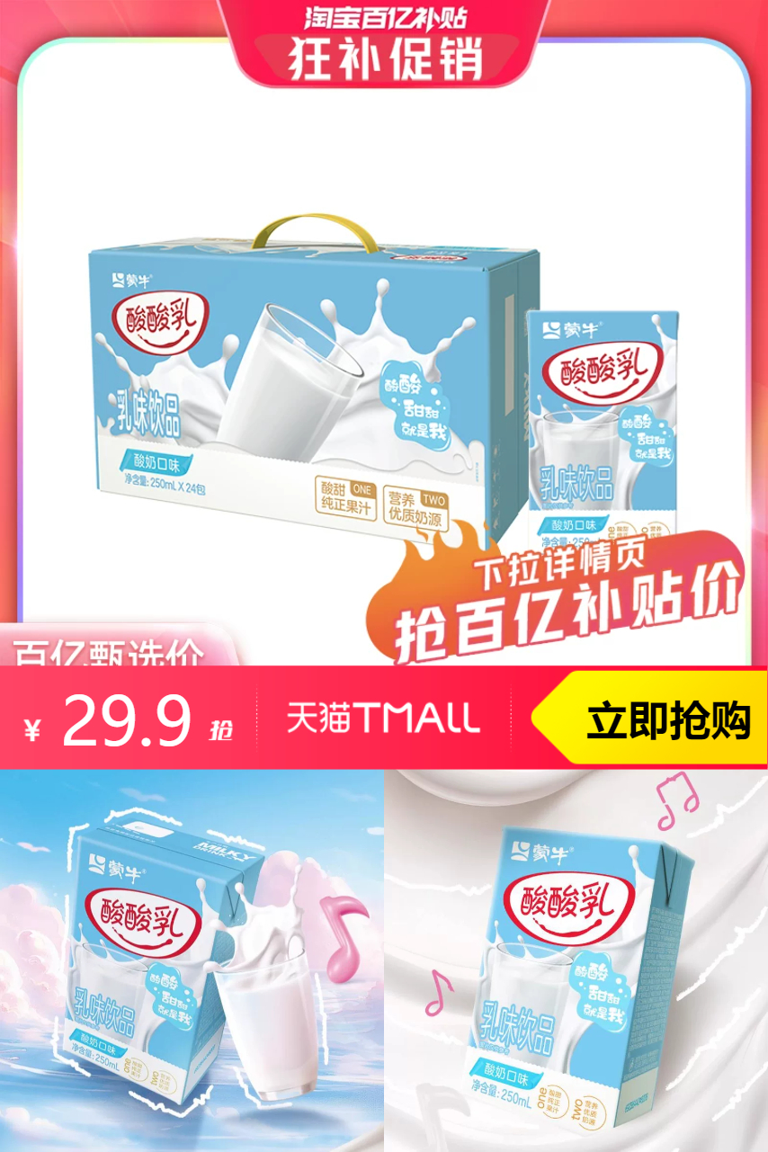 ⭕百补!蒙牛酸酸乳酸奶味250ml×24包
