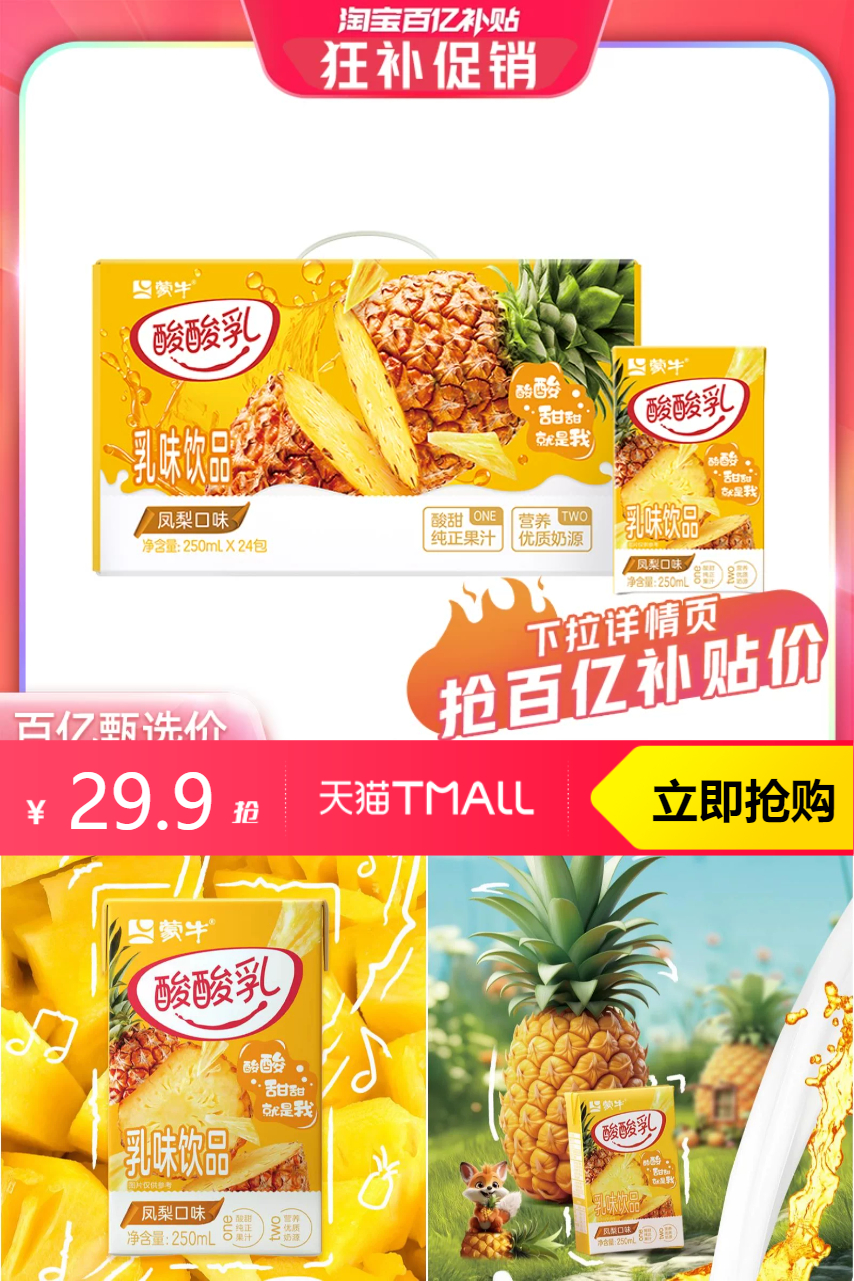 ⭕百补!蒙牛酸酸乳凤梨味250ml×24盒
