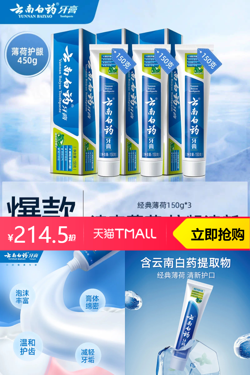 云南白药 云南白药牙膏薄荷清爽型150g*3 569.5元减95 商品纠错