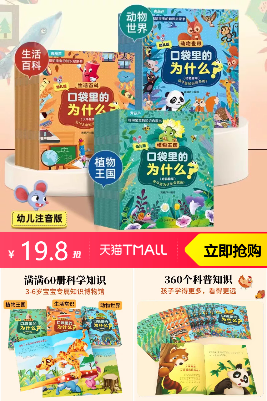 【原价49.8元-淘客券30元=到手19.8元】注音+彩图,全是娃好奇的小问题。不认字也能自己读~