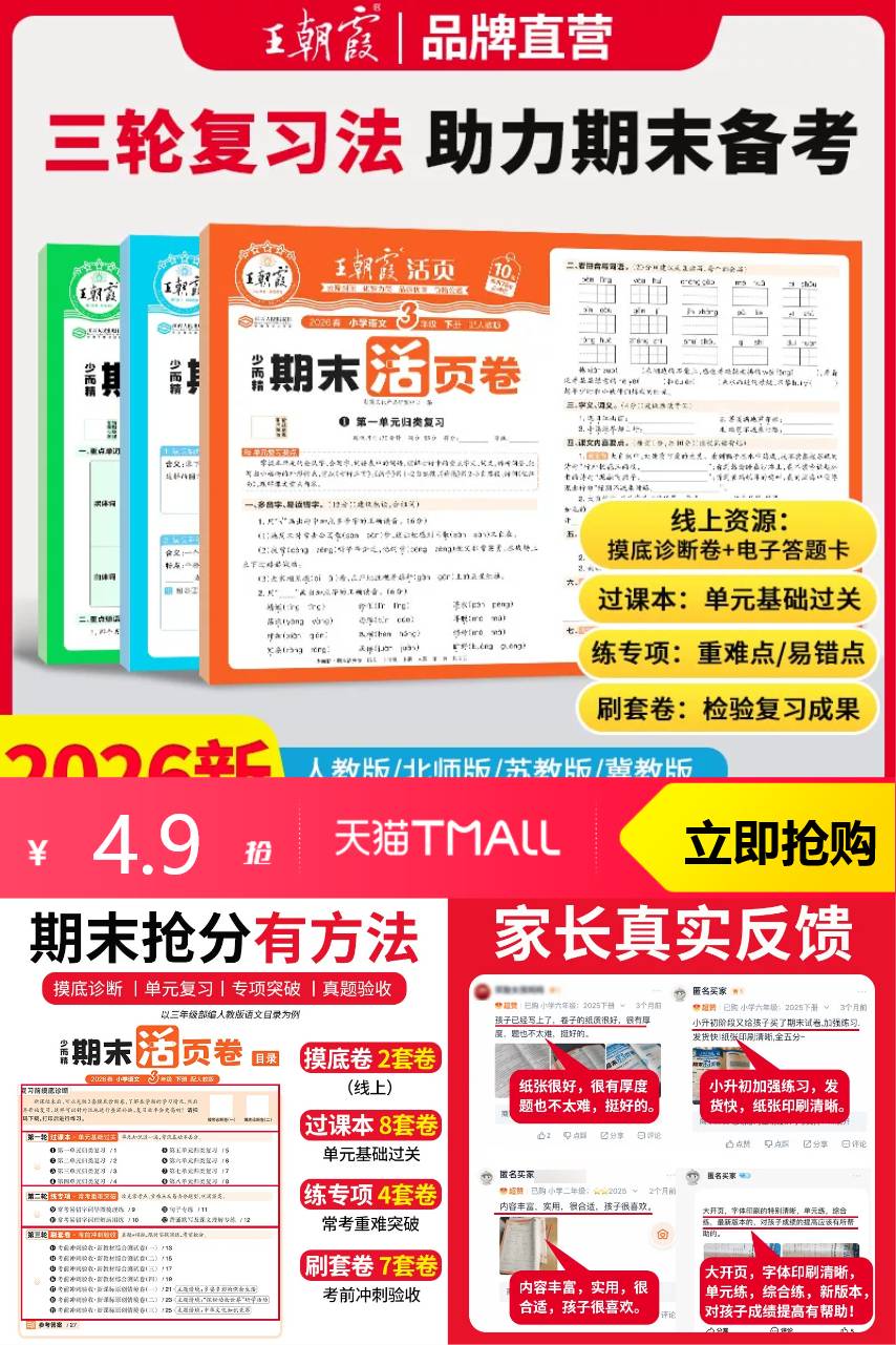 【天降到手4.9,叠加天降补贴到手2.9左右】活页设计真的太懂了!撕下来就能做,不用抱着厚厚的大卷子翻来翻去,带去补习班也超方便拎走