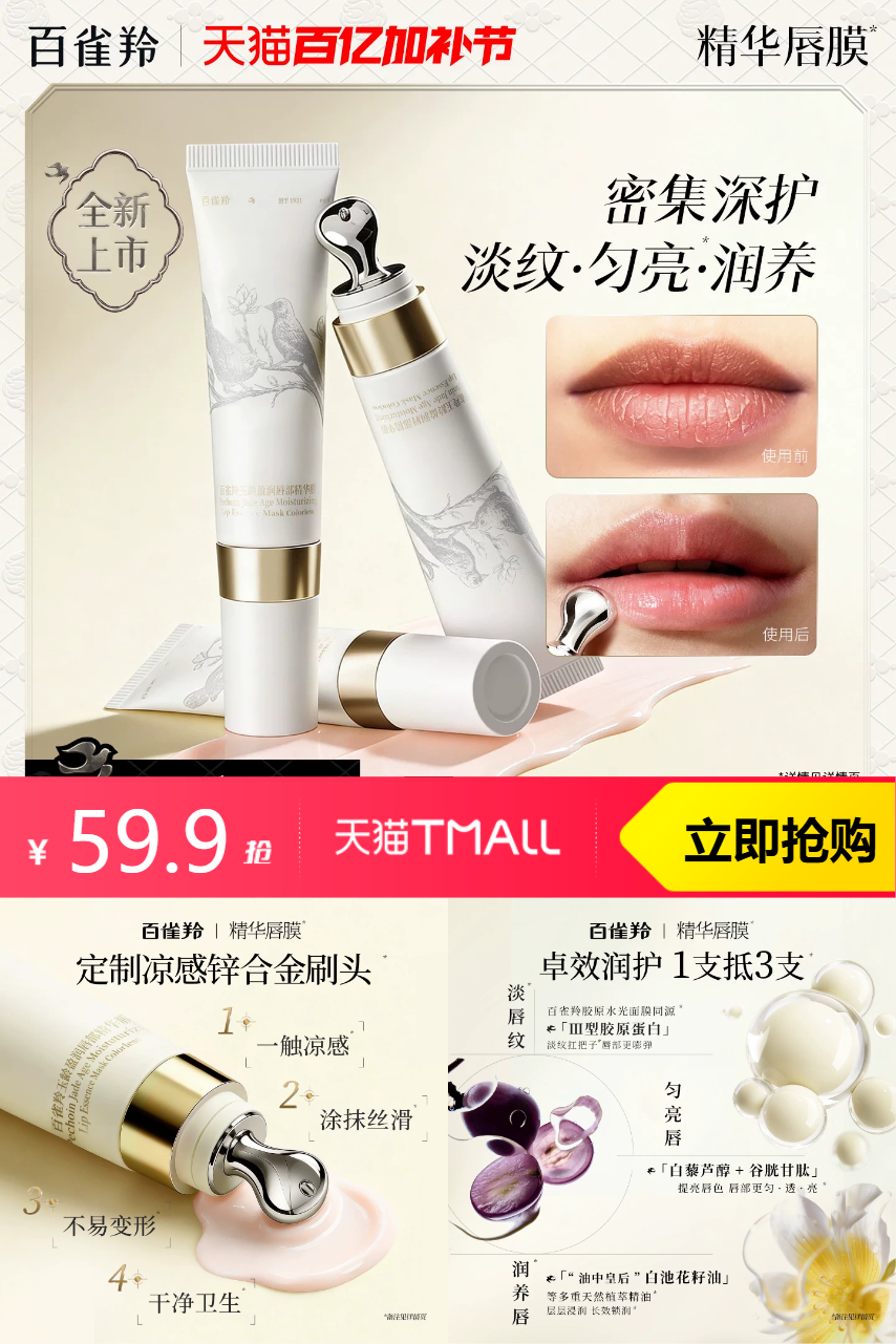 百雀羚 百雀羚精华透润淡唇纹防干裂唇膜 74.9元减15 商品纠错