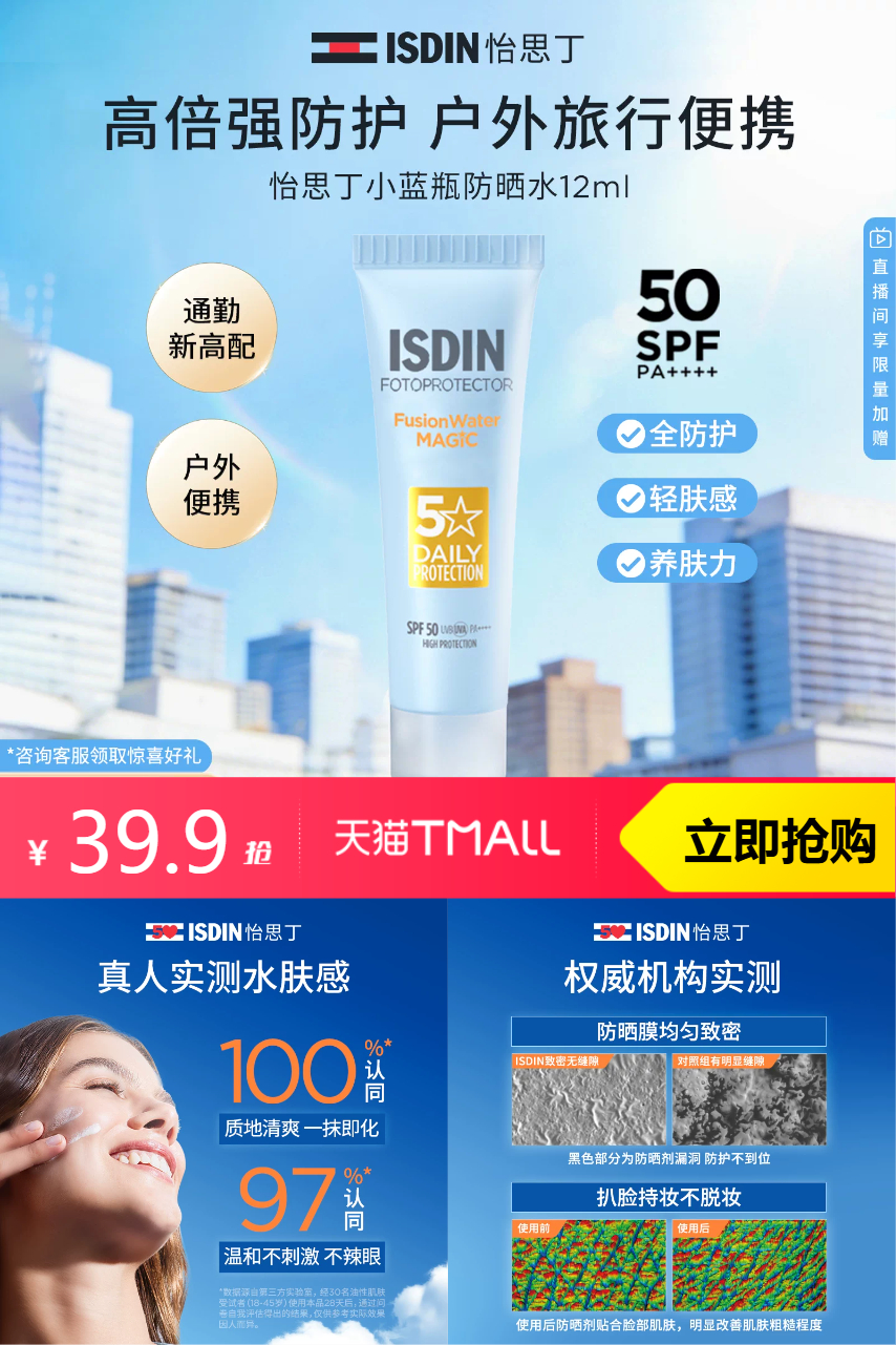 ISDIN ISDIN第三代小蓝瓶水感防晒SPF50 69.9元减10 商品纠错